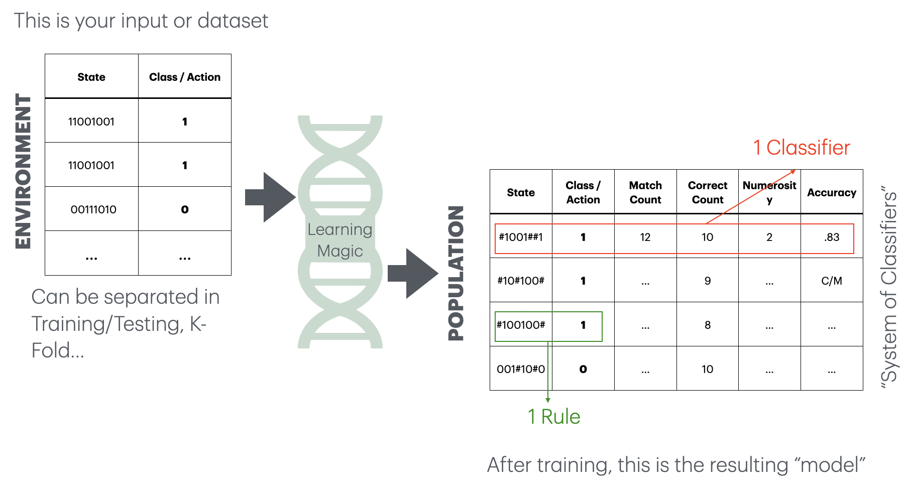 And because one can read the rules, and “understand” the population, you can also use the LCS to interpret the results and thus do data mining!