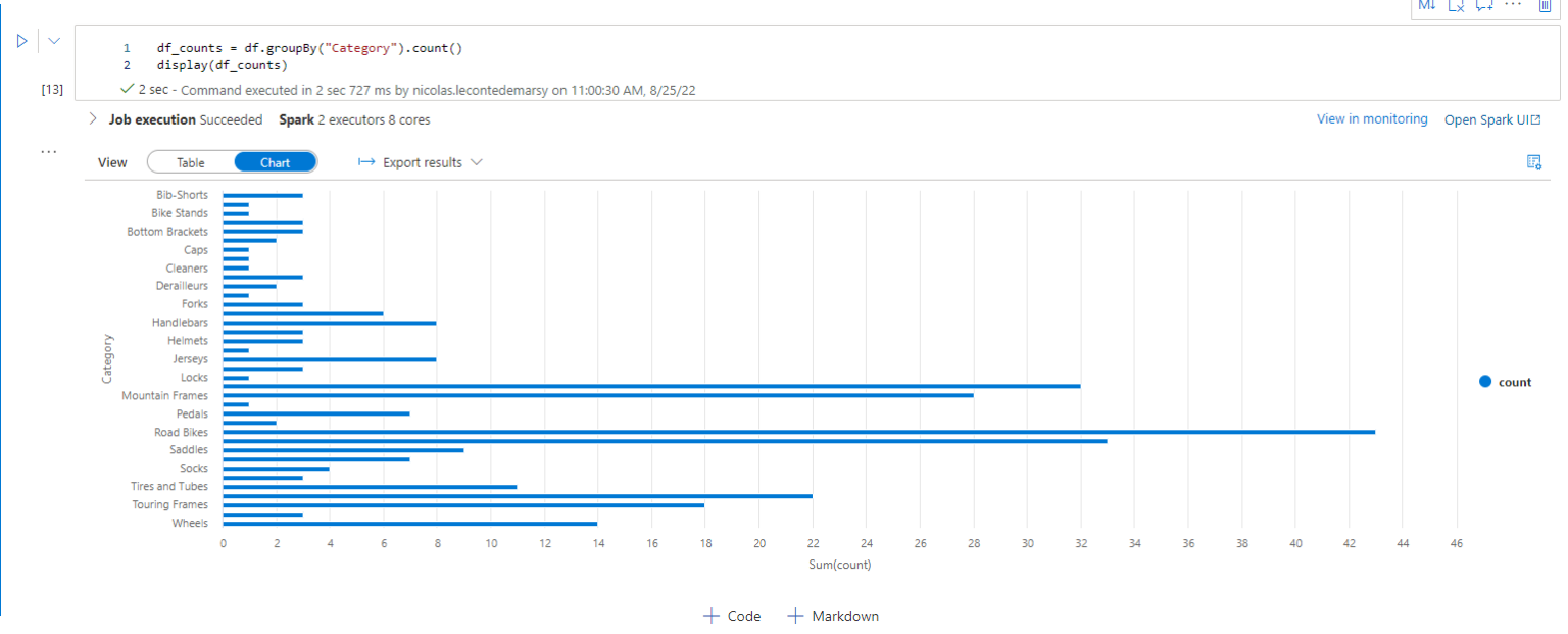 And finally (for today) this: You can use PySpark to play from a Python Notebook with your data, treating it as a Dataframe. Spark will load the data from the Datalake, and you will have it available to play with 🙂